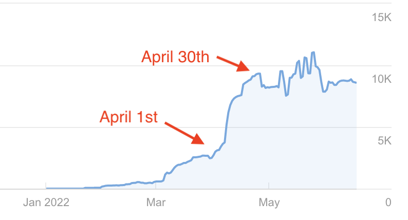 By April 30th, 2022, the monthly organic search traffic had grown all the way up to 8,220!