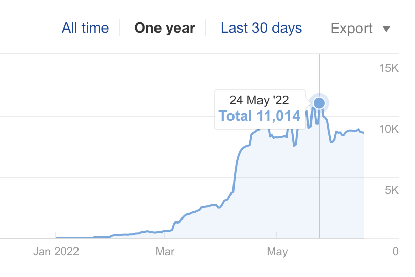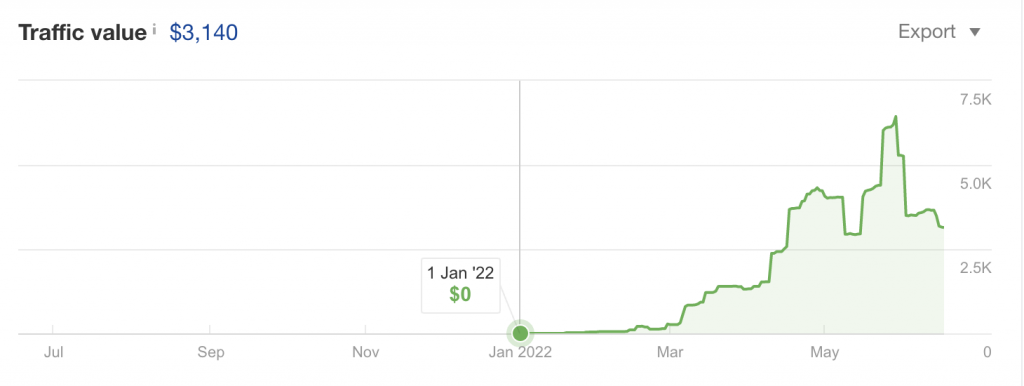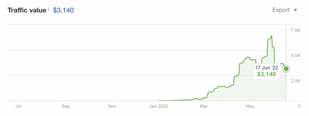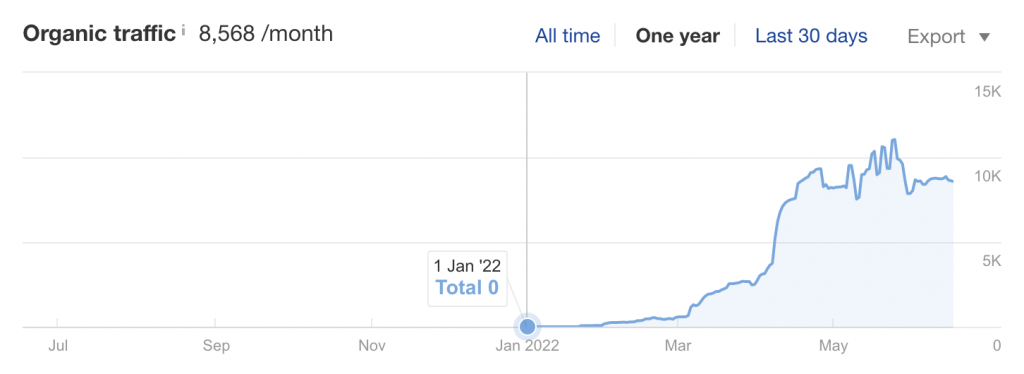 According to Ahrefs, the organic search traffic went all the way up to 11,000+ at one point this month.