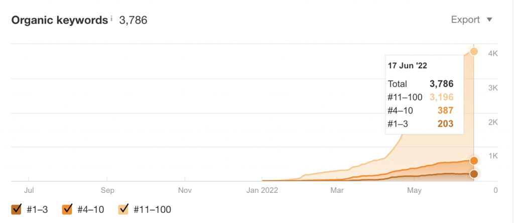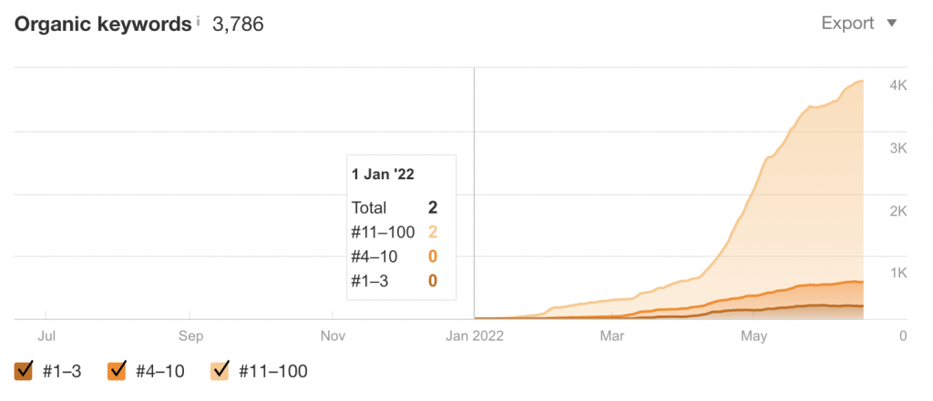 As mentioned earlier, they came to us with a brand new site that was getting 0 organic search traffic per month: