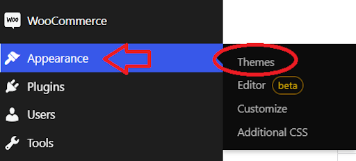 Head to your WordPress dashboard, click the tab titled “appearance” and select the option called “themes”: